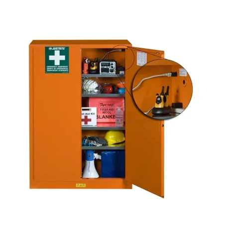 Emergency Preparedness Storage Cabinet, PowerPort™ Electrical Pass-Thru, 4 Shelves, 2 Keys, Orange