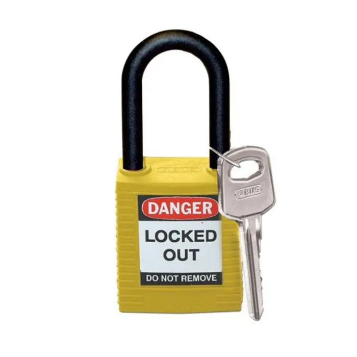 Compact, insulated nylon safety padlock with a 6.5mm non-conductive shackle. Designed for secure lockout/tagout procedures with enhanced shock protection and tamper resistance.