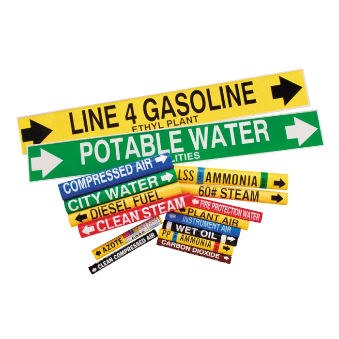 Durable pipe markers designed to meet ANSI/ASME standards. Available in various formats and materials for indoor, outdoor, and industrial applications.