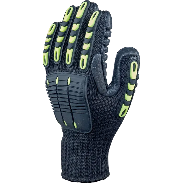 Heavy-duty anti-vibration gloves with nitrile palm coating and reinforced protection zones.