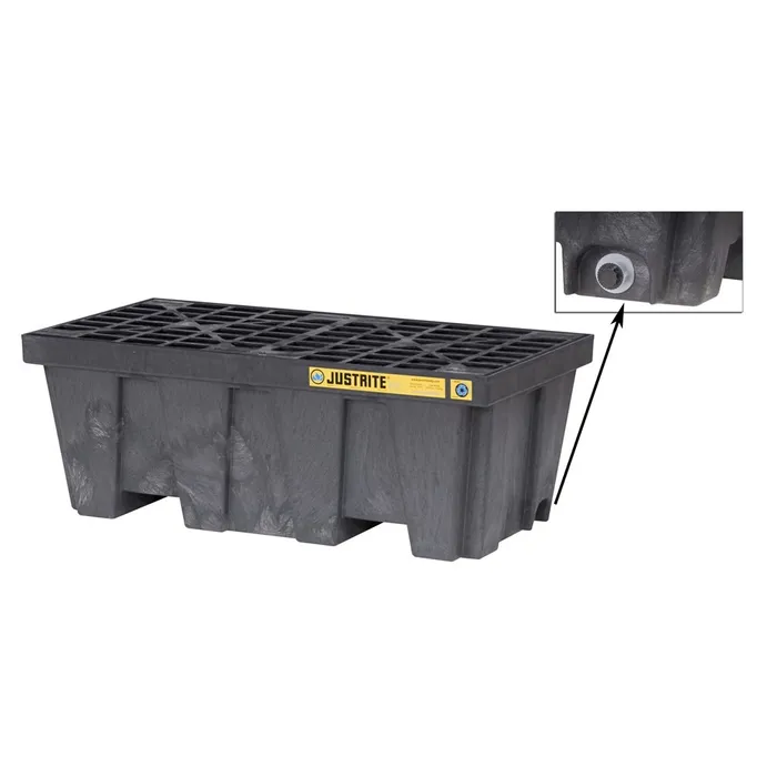 EcoPolyBlend™ Spill Control Pallet With Drain, 2 Drum, Recycled Polyethylene, Black