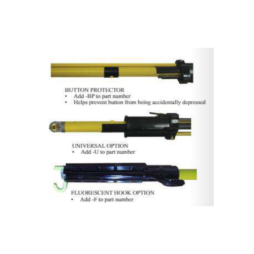 Hastings Telescopic Shotgun Sticks collapse for easy storage and extend to various lengths for high-voltage line work. Options include button protectors, universal heads, and fluorescent hooks.