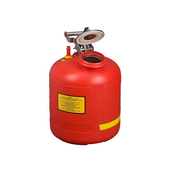 The JUSTRITE 5-Gallon Polyethylene Safety Can (Model 14565) is engineered for safe and efficient liquid disposal. Constructed from high-density polyethylene (HDPE), it offers superior chemical resistance and a leak-proof design. The spring-loaded cap remains securely closed yet vents automatically between 3–5 psi (0.2–0.35 bar) to prevent pressure buildup. A stainless steel handle and latch-catch system ensure easy handling, while the wide-mouth opening with integrated stainless steel flame arrester protects against external ignition sources. The patented carbon insert provides proper grounding, and the sturdy base design minimizes tipping risks. A built-in fill gauge rises as the can nears capacity, offering a clear visual warning for safe monitoring.