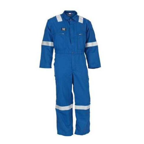 Made with DuPont Nomex® III, this royal blue coverall offers superior protection against heat and flame. It includes reflective tapes for visibility and meets industry standards for thermal hazard protection.