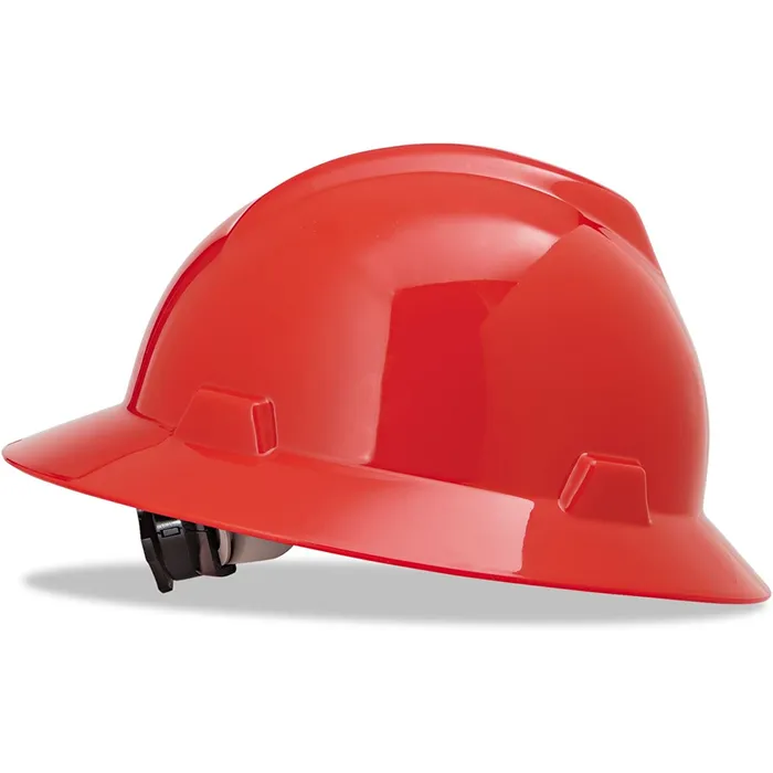 The MSA V-Gard® Red Full Brim Hard Hat delivers dependable head protection with a lightweight polyethylene shell and Fas-Trac® suspension. Designed for comfort with self-adjusting crown straps, it ensures a secure fit while offering superior impact resistance. Non-slotted for added durability, this Class E hard hat is suitable for a wide range of industrial applications and can be customized with logos and striping. Meets ANSI Z89.1-2014 and CSA Z94.1-2015 standards.