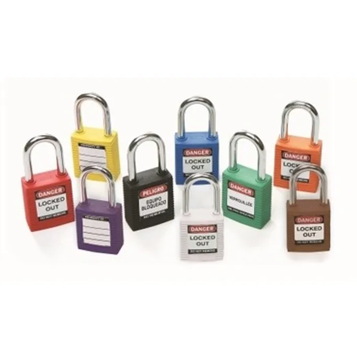 Durable safety padlock with reinforced nylon body and steel shackle. Features a precision 6-pin cylinder and paracentric keyway for enhanced security and tamper resistance.